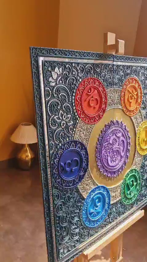 7 Chakra Lippan Art Wall Decor – Handcrafted Mud & Mirror Artwork